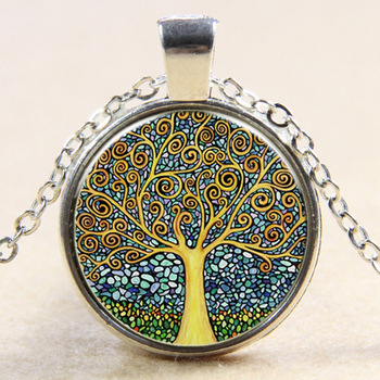 XP-TGN-LT-101 Groothandel Hanger Familie Glas Kleurrijke Tijd Gem Leven Boom Charme Dome Cabochon Ketting Voor Dames